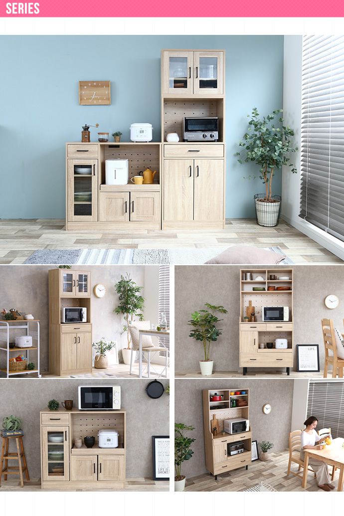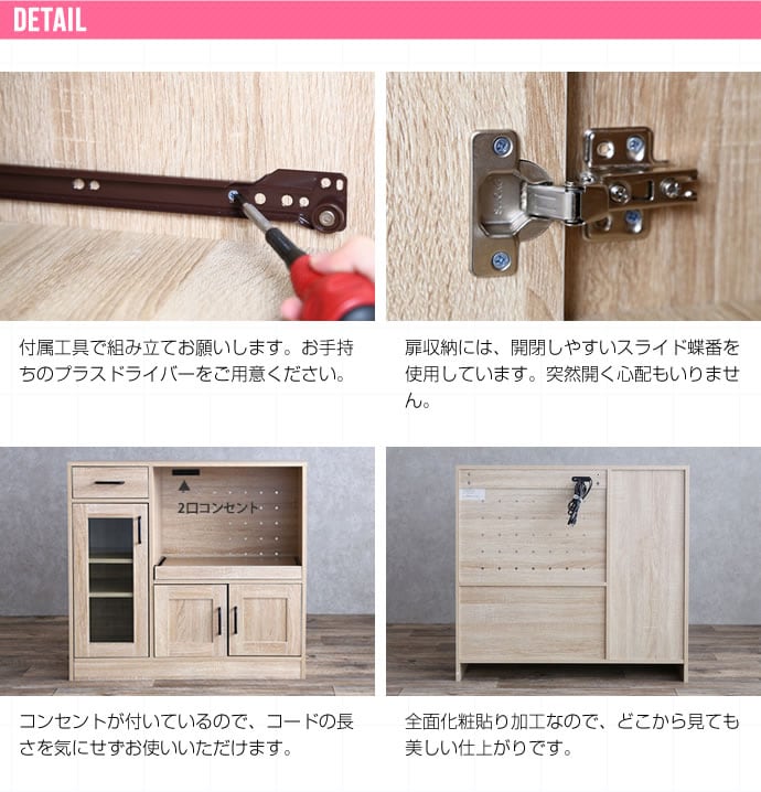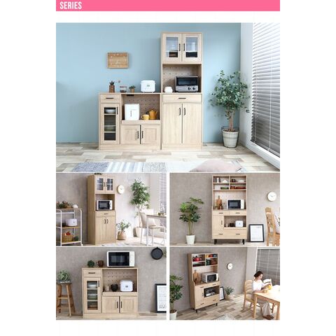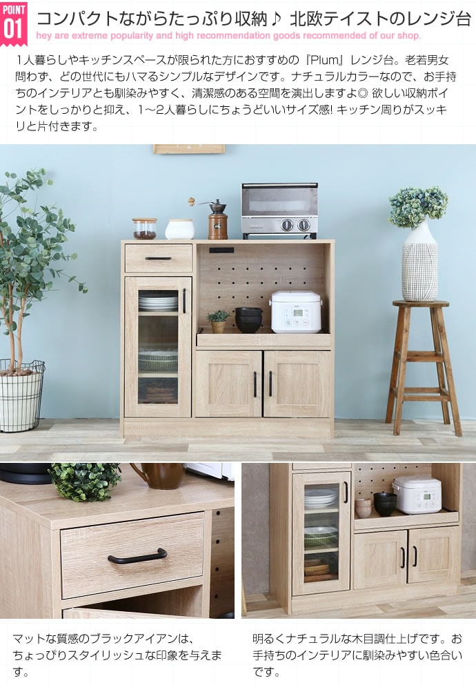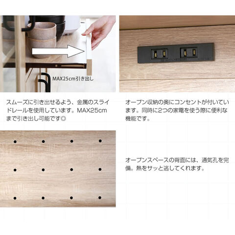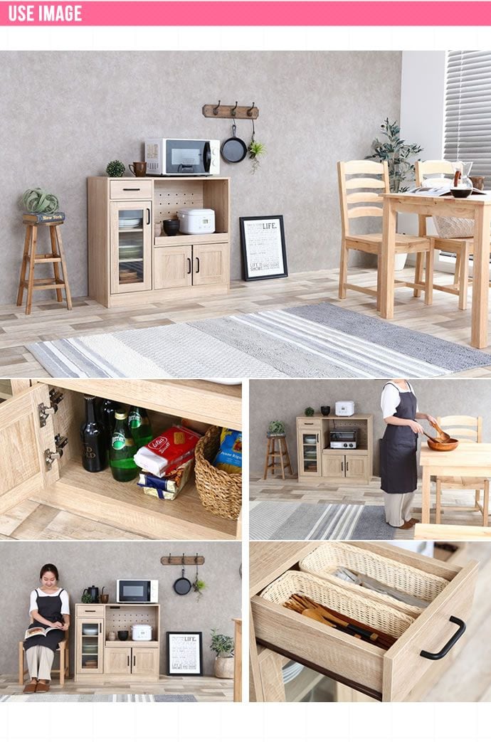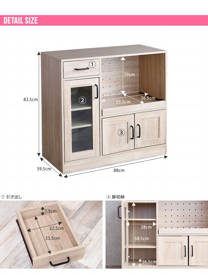 レンジ台 食器棚 キッチン収納 キッチンキャビネット 幅88 大型レンジ対応 ミニ食器棚 収納 引き出し 扉付き スライドレール ロータイプ キッチンラック キャビネット【送料無料】