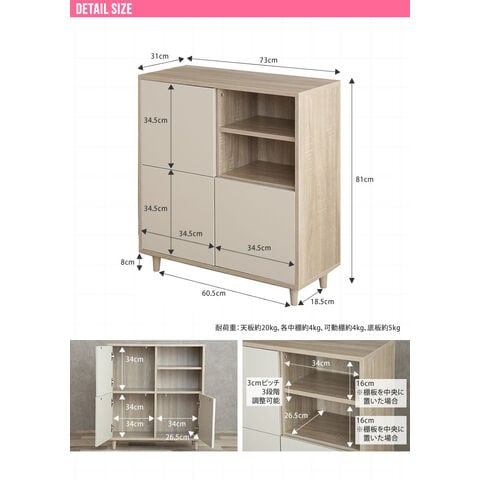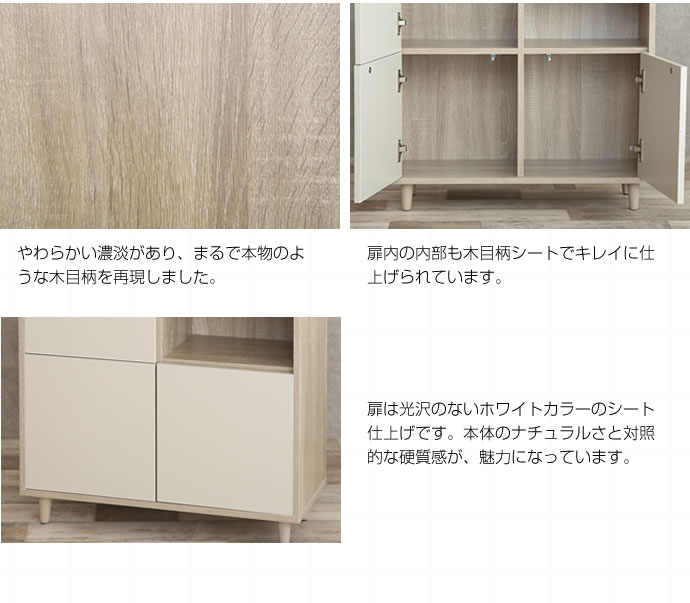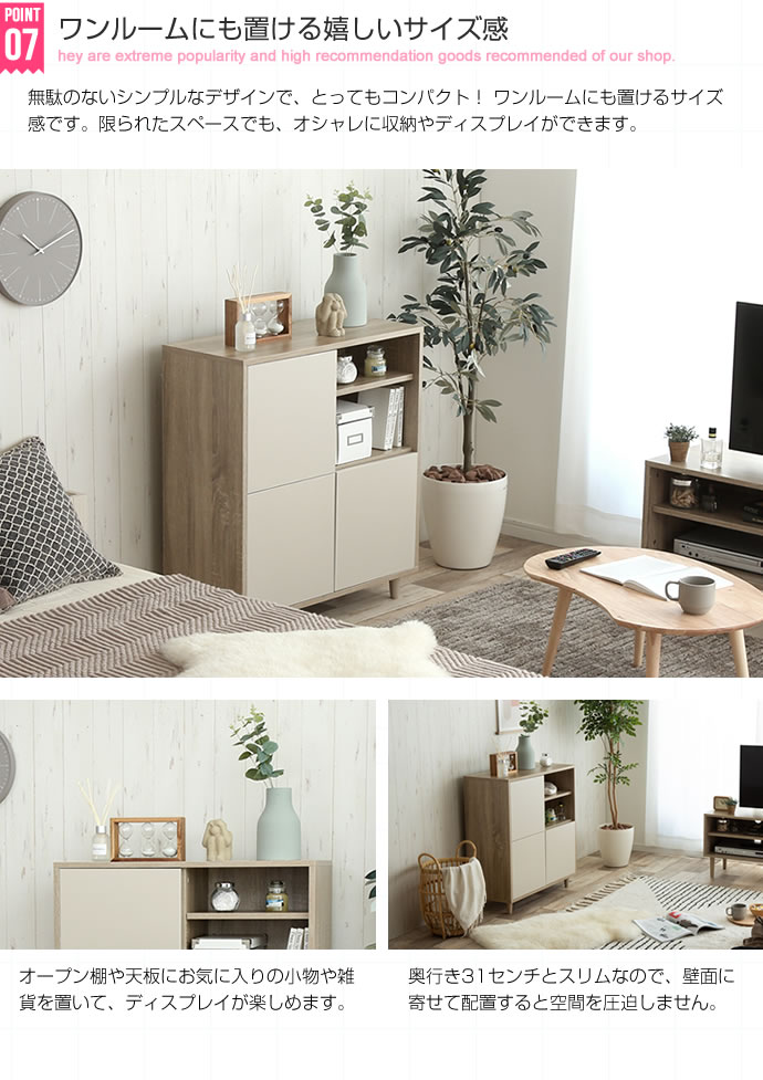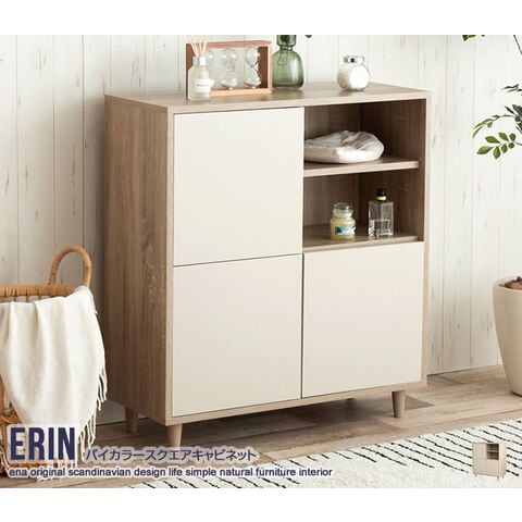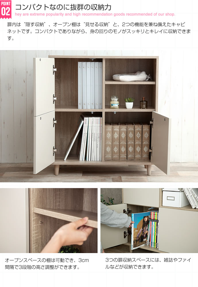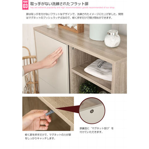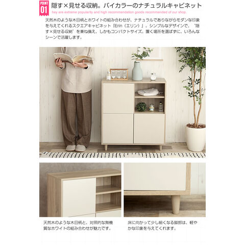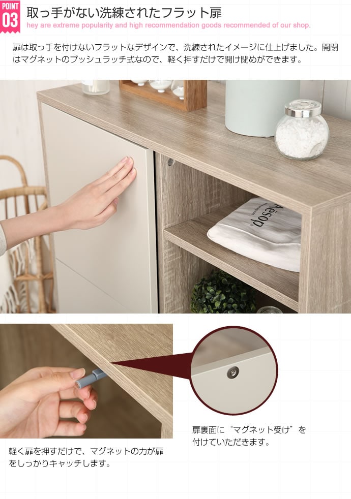 キャビネット 幅73cm 扉付き プッシュ開閉 ラック シェルフ サイドボード おしゃれ 韓国インテリア スリム コンパクト 北欧 バイカラー シンプル ツートンカラー 一人暮らし リビング キッチン 収納棚【送料無料】