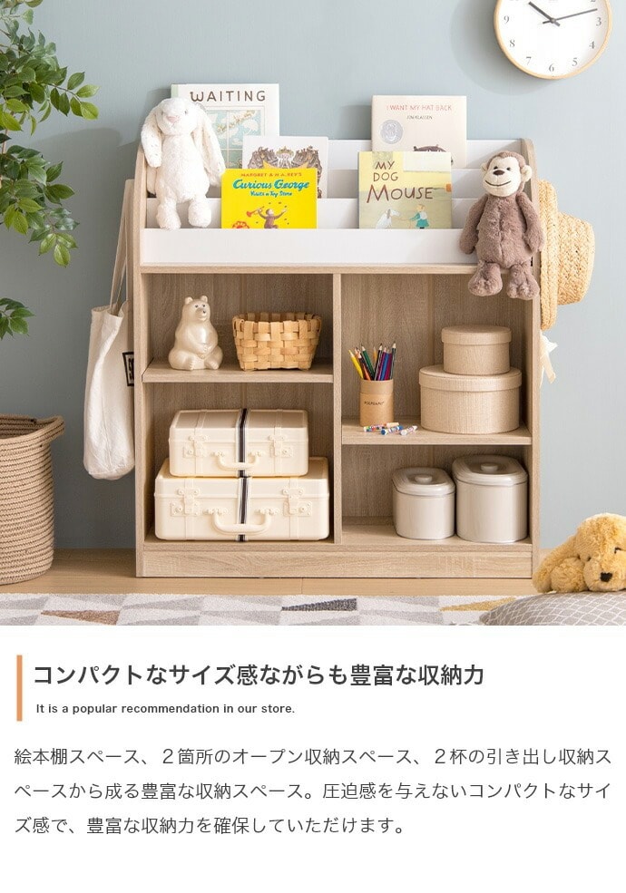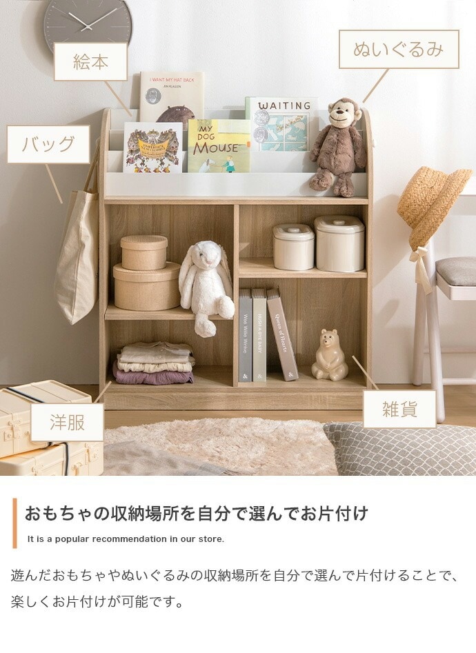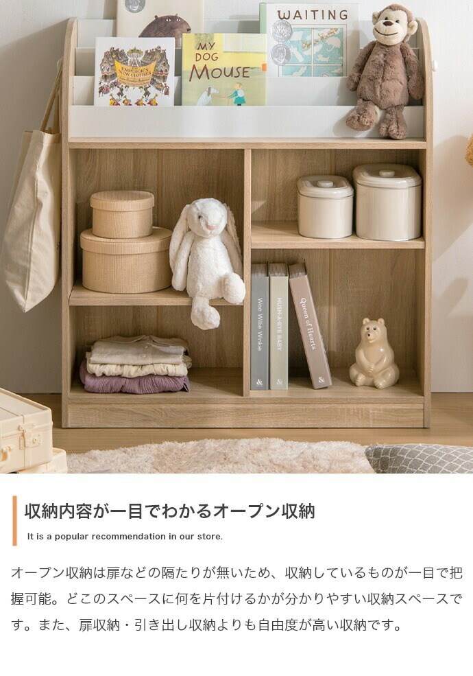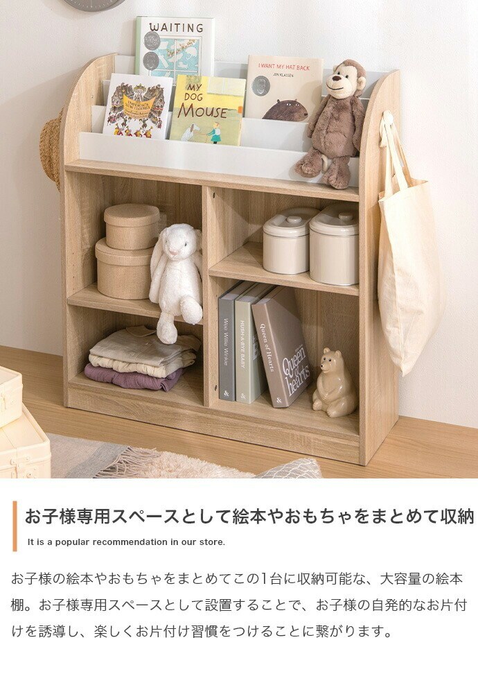 絵本棚 幅84cm 子供部屋 おもちゃ収納 フック付き 大容量 オープン ブックラック 本棚 子供用 おしゃれ 女の子 男の子 お片付け キッズ コンパクト フック お子様用 おもちゃ箱 おもちゃ 収納【送料無料】