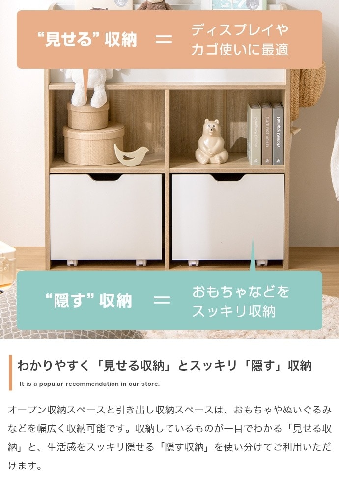 絵本棚 幅84cm 子供部屋 おもちゃ収納 フック付き 大容量 引き出し 引き出し収納 ブックラック 本棚 子供用 おしゃれ 女の子 男の子 お片付け キッズ コンパクト フック お子様 おもちゃ 収納【送料無料】