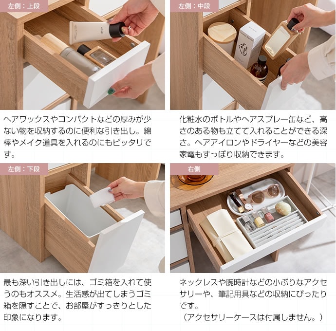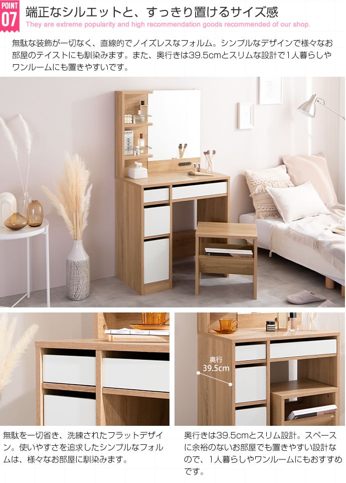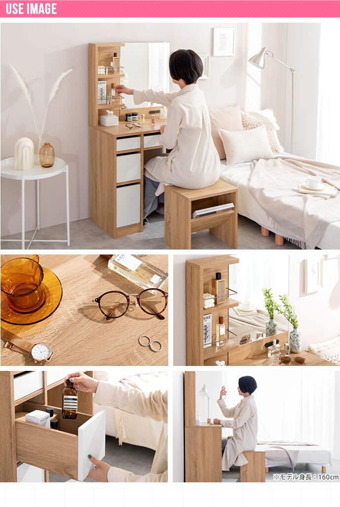 幅70のコンパクトサイズながら、大容量の収納力を兼ね備えたドレッサー。