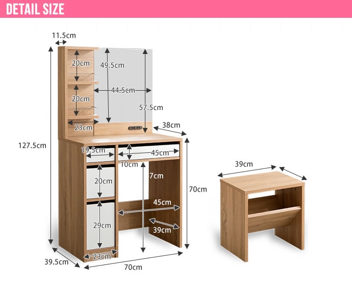 ドレッサー 幅70cm×奥行39.5cm×高さ127.5cm
