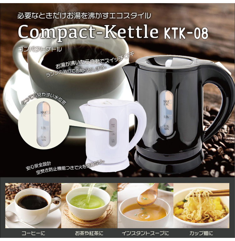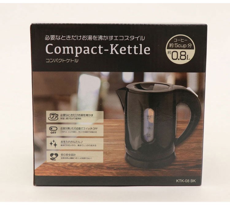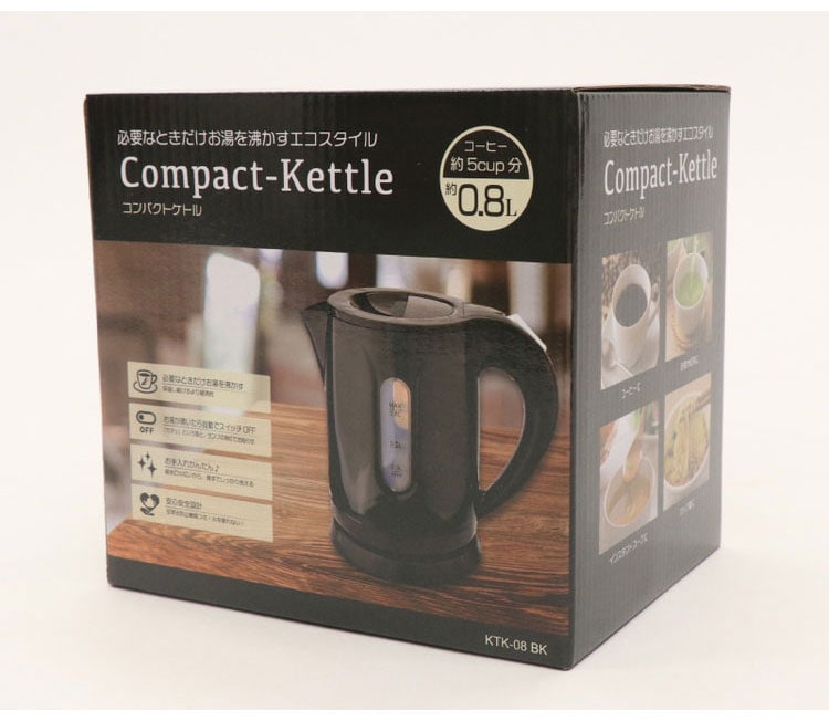 ケトル 電気ケトル おしゃれ 0.8L 空焚き防止機能 電気ポット 新生活 1人暮らし 湯沸かし ポット 湯沸かしポット 自動スイッチオフ 0.8リットル ブラック KTK-08BK ヒロコーポレーション【送料無料】