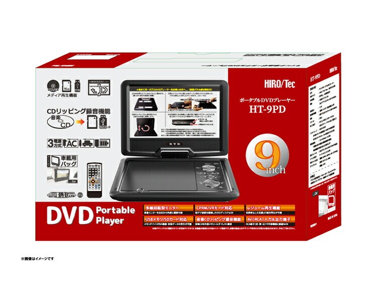 HIROTec 9インチ ポータブルDVDプレーヤー HT-9PD 多軸回転型モニター CPRM VRモード対応 DVD レジューム再生機能 USBメモリ SDカード 画像 音声データ 音楽CDリッピング録音機能【送料無料】