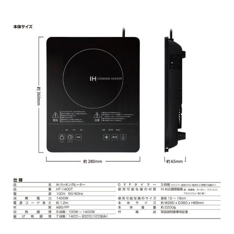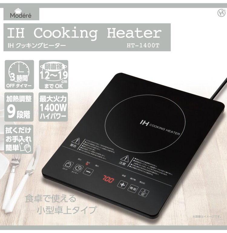 IHクッキングヒーター 小型卓上タイプ 1400W 9段階火力調節 電源OFFタイマー お手入れカンタン なべ検知 切り忘れ防止 トッププレート過熱防止 HT-1400T【送料無料】