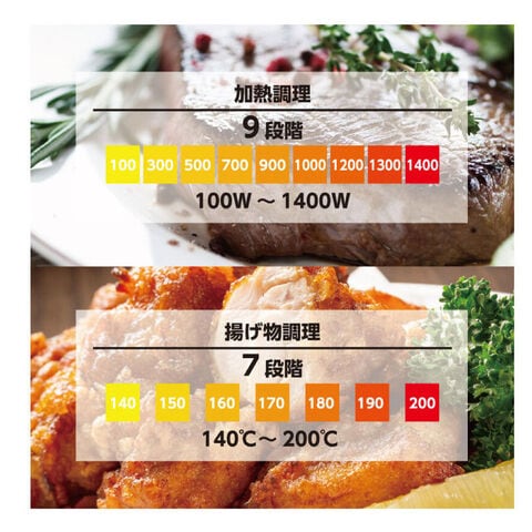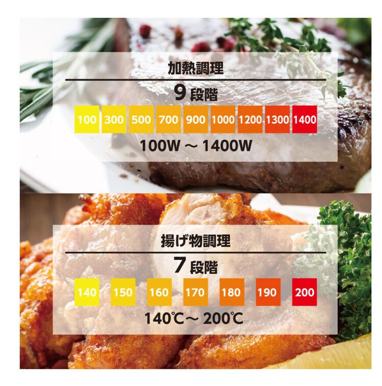 加熱調理モード:9段階(100W~1400W)