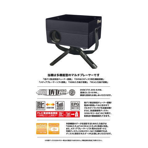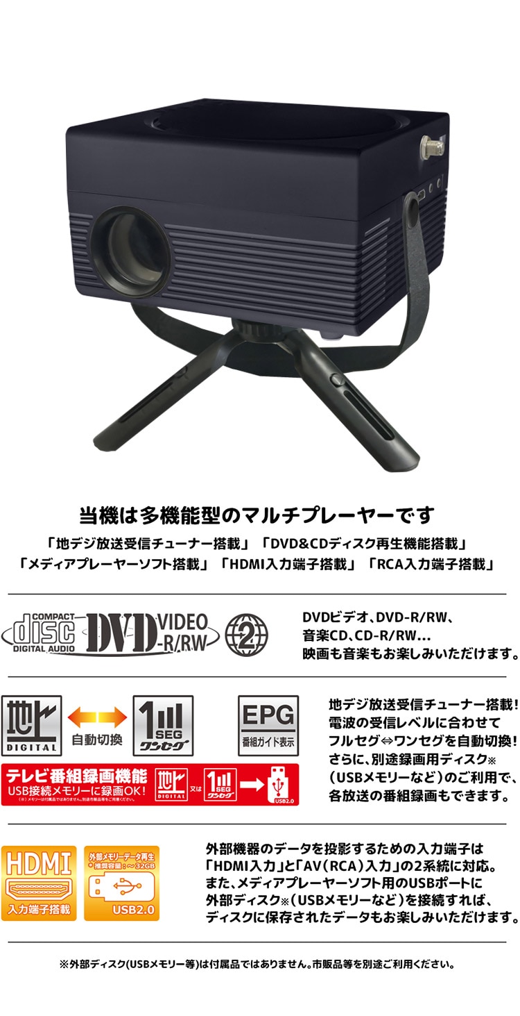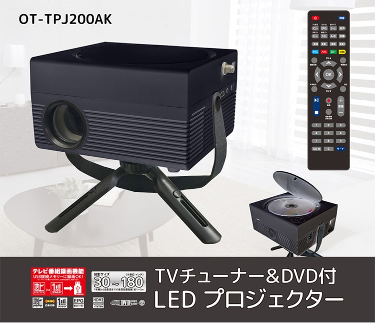 プロジェクター OVERTIME TVチューナー DVD付 LED OT-TPJ200AK 大迫力 映像 マルチプレーヤー 地デジ放送受信 ディスク再生機能 ビデオ 音楽 映画【送料無料】