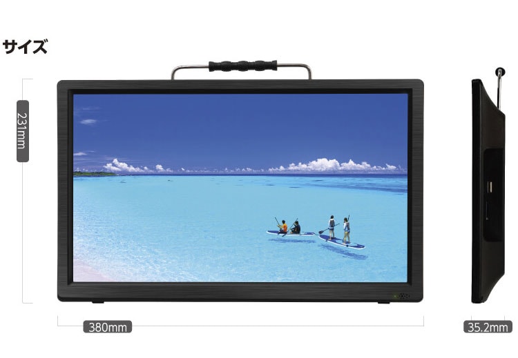 入力端子:アンテナ、DC電源、USB×2(番組録画・メディア再生)、AVイン、HDMI、miniB-CASカードスロット