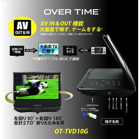 ポータブルDVDプレイヤー ポータブルテレビ 10.1インチ バッテリー内蔵 フルセグDVDプレイヤー 軽量 多機能 ワンセグ フルセグ OT-TVD10G OVER TIME【送料無料】