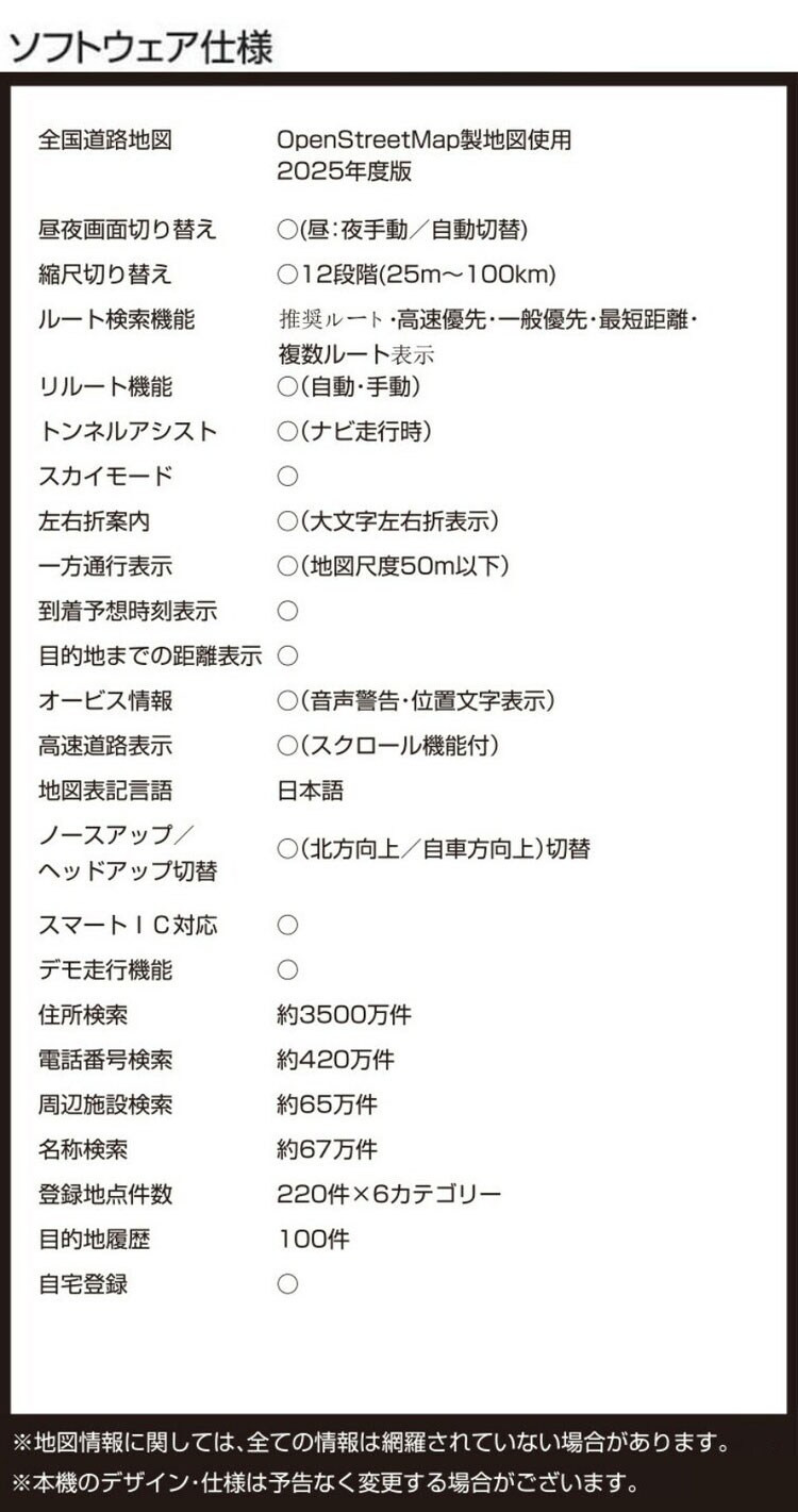 地図の更新は本製品は発表後の翌年から年1回、計2回まで。(毎年春~夏頃)