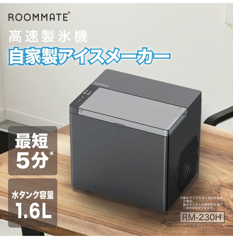製氷機 自家製アイスメーカー 高速製氷機 最短5分 アイスメーカー 穴あきキャップ型アイス 2種製氷サイズ 家庭用 氷貯蔵量0.6kg 大型水タンク1.6L RM-230H ROOMMATE【送料無料】
