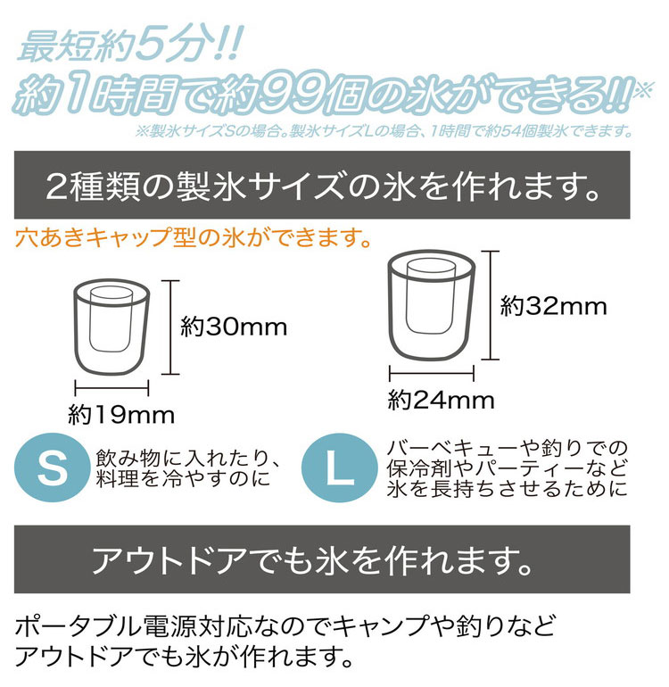 最短5分!!約1時間で約99個の氷ができる!!