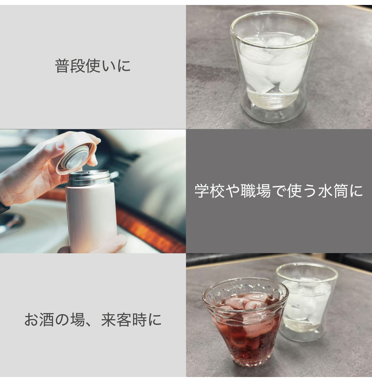 普段使いに、学校や職場で使う水筒に、お酒の場、来客時に