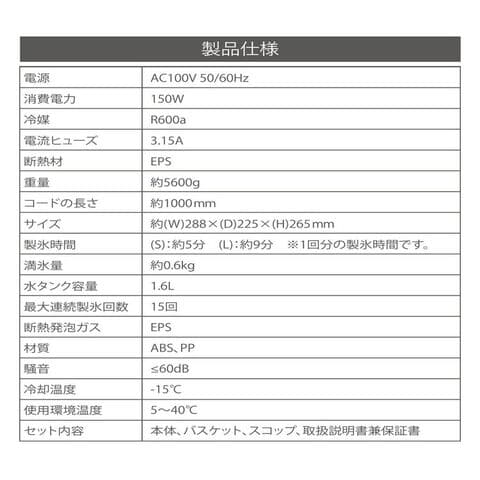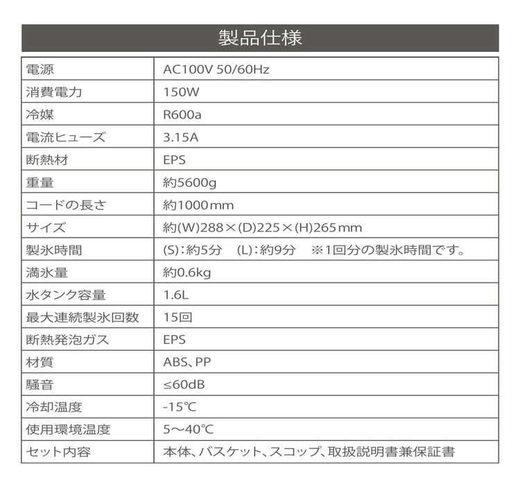 製氷時間:(S):約5分 (L):約9分 ※1回分の製氷時間です。