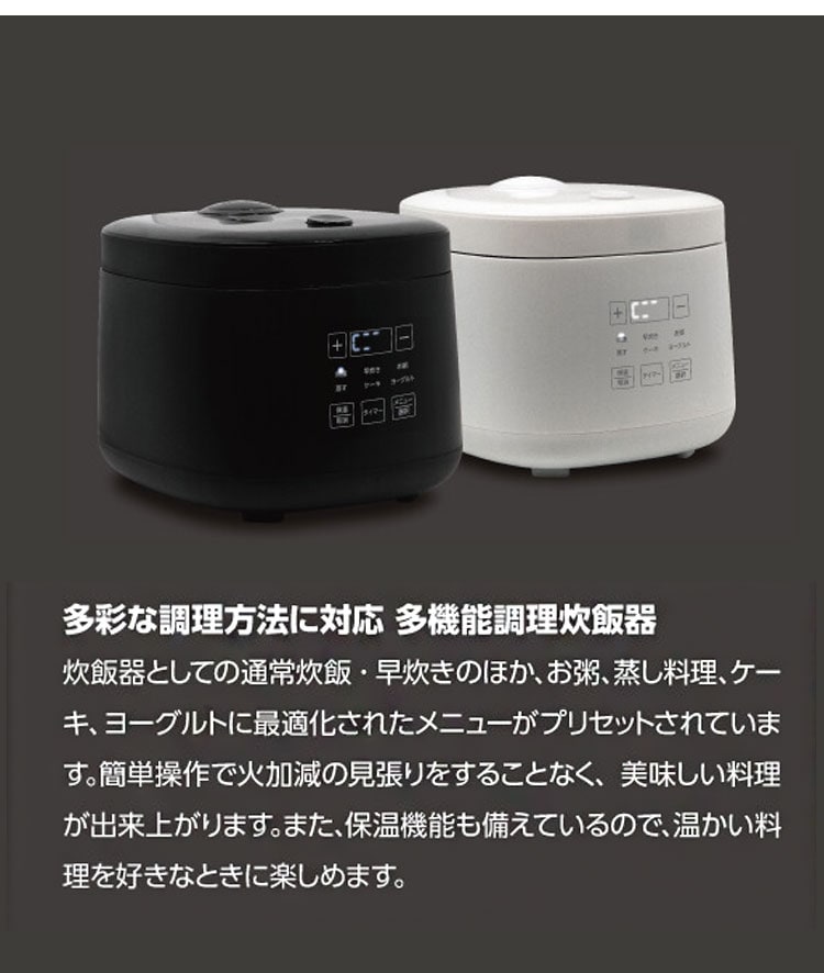 機能:炊飯/早炊き/お粥/蒸す/ケーキ/ヨーグルト/保温
