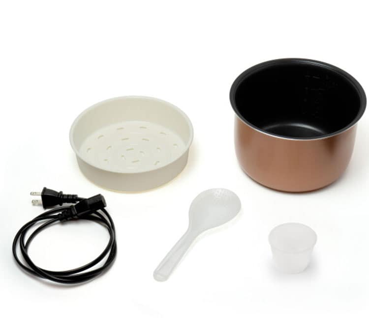 付属品:計量カップ、しゃもじ、蒸し皿、電源コード、取扱説明書兼保証書