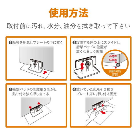 ■本製品は揺れによる移動・転倒を最小限に抑えるためのもので、地震などによる破損や事故に対しての責任を負うものではありません。