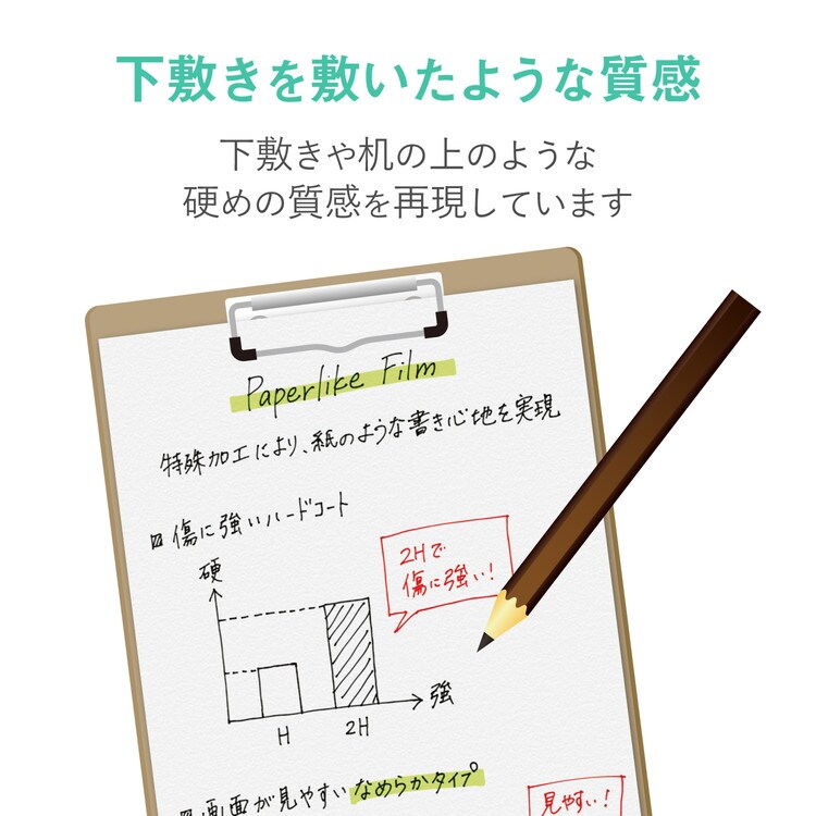 ■表面の特殊構造により、紙を重ねたようなペンの沈み込みを再現しています。