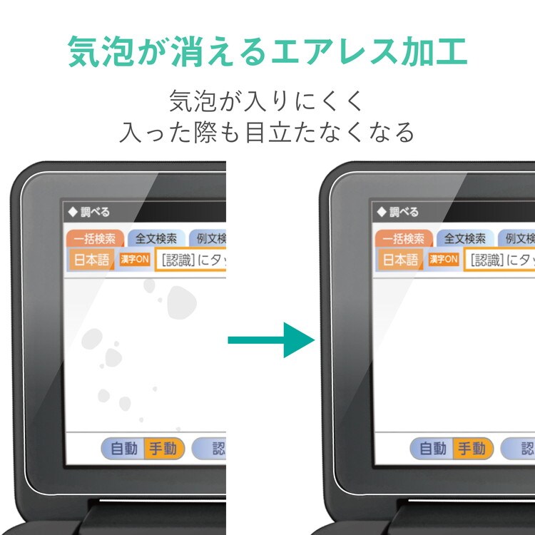 シャープ[2020年新モデル/2019年秋モデル]に対応。表面の特殊構造により、紙を重ねたようなペン先の沈み込みを再現した、ペーパーライクタイプの電子辞書用液晶保護フィルム。