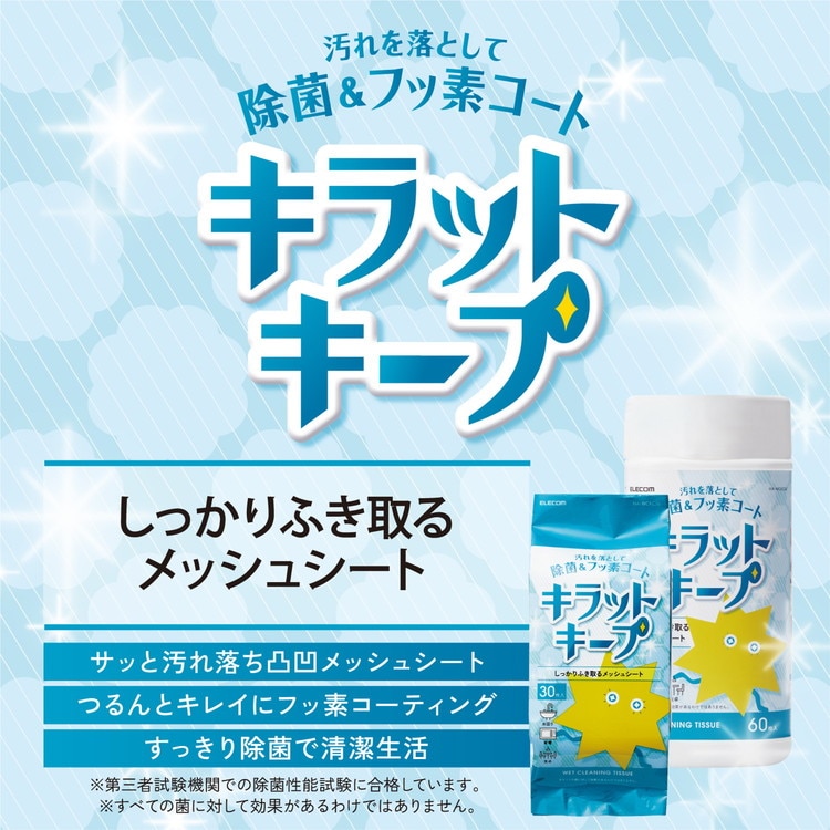 ELECOM ウェットティッシュ 60枚 フッ素入り 除菌 アルコール メッシュ ボトル 水回り キッチン 洗面台 浴室 テーブル ウェットシート クリーナー エレコム HA-WCKC60