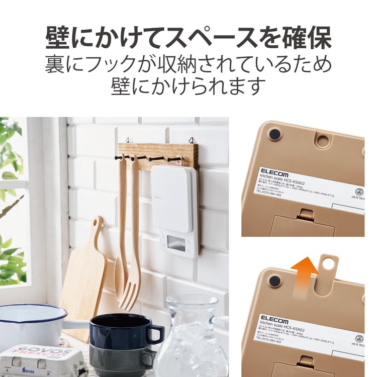 ELECOM キッチンスケール デジタルスケール 計量器 はかり 最大3kg 0.5g単位 バックライト付き カロリー計測 炭水化物量計測 3種登録可(ごはん+2種) ホワイト エレコム HCS-KSA02WH【送料無料】