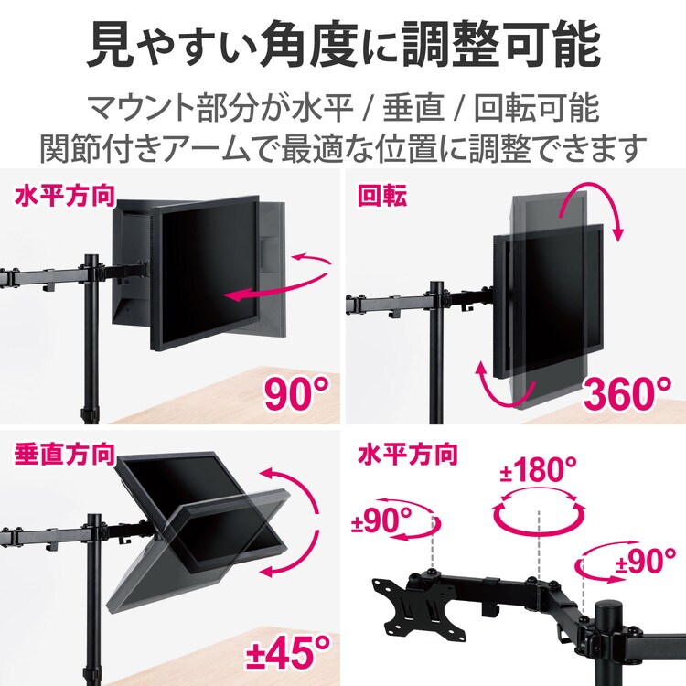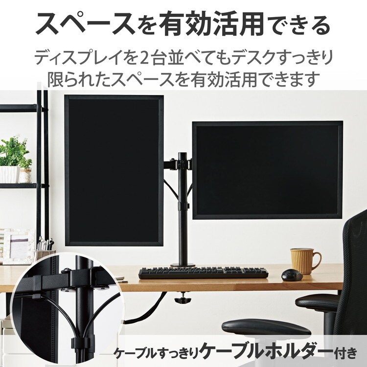 ■モニターを2台設置できるダブルアームタイプです。
