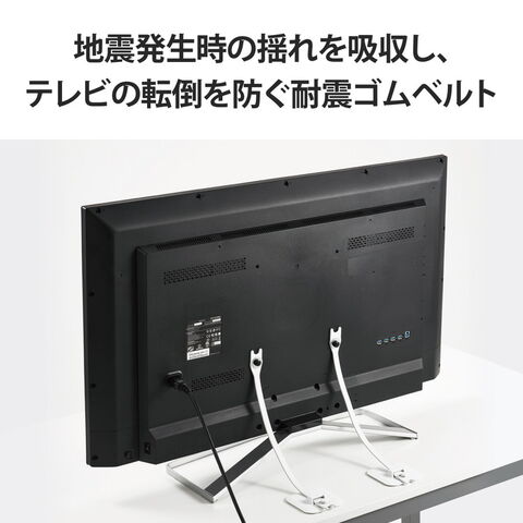 ■テレビ背面に取り付けることで、地震発生時の揺れを吸収し、転倒を防ぐ耐震ゴムベルトです。