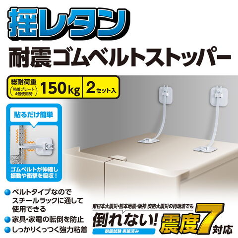 ■冷蔵庫や食器棚などの大型家具に取り付けることで、地震発生時の揺れを吸収して転倒を防ぐ耐震ゴムベルトです。