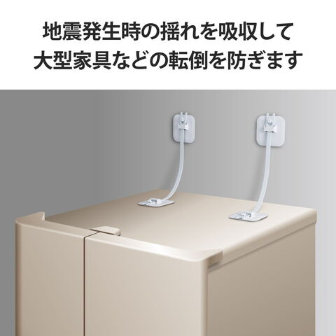エレコム 耐震 ゴムベルト 家具 転倒防止 震度7対応 150kg 2本入り 強力粘着 スチールラック対応 揺れ吸収 地震用ストッパー 冷蔵庫 食器棚 ホワイト TS-F015【送料無料】