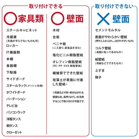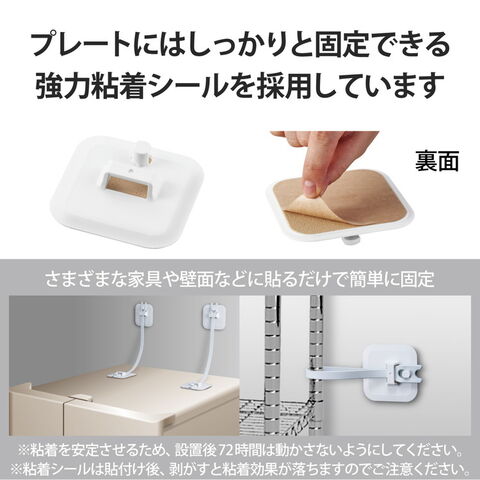 ■強力粘着シールによって、さまざまな家具や壁面にプレートを取り付けて固定できます。