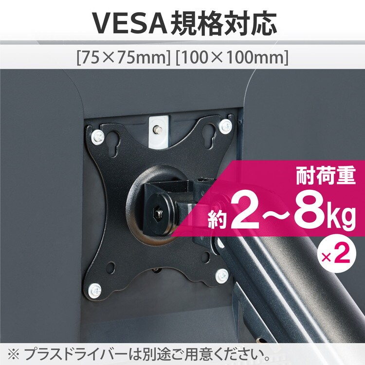 ■VESA規格(75mm×75mm、100mm×100mm)に準拠したモニターに対応しています。