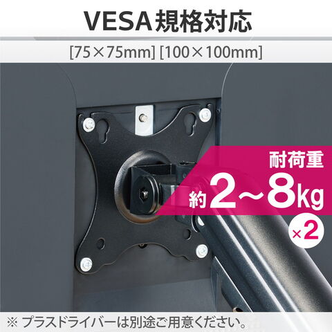 ■モニターを2台設置できるダブルアームタイプです。