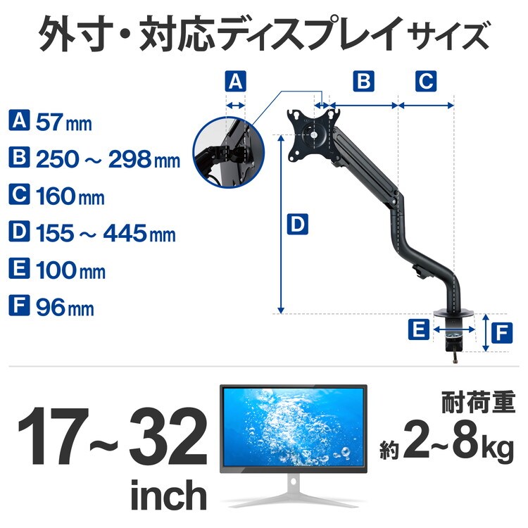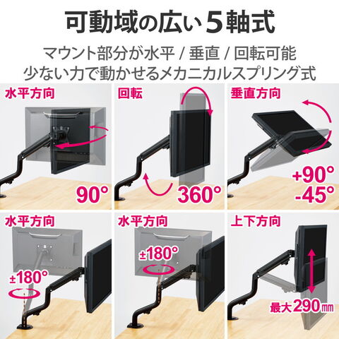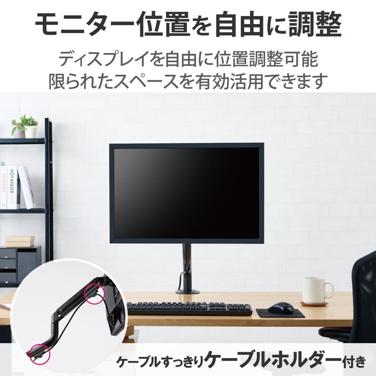 ■17~32インチサイズのモニターに対応するロングアームのメカニカルスプリング式シングルモニターアームです。