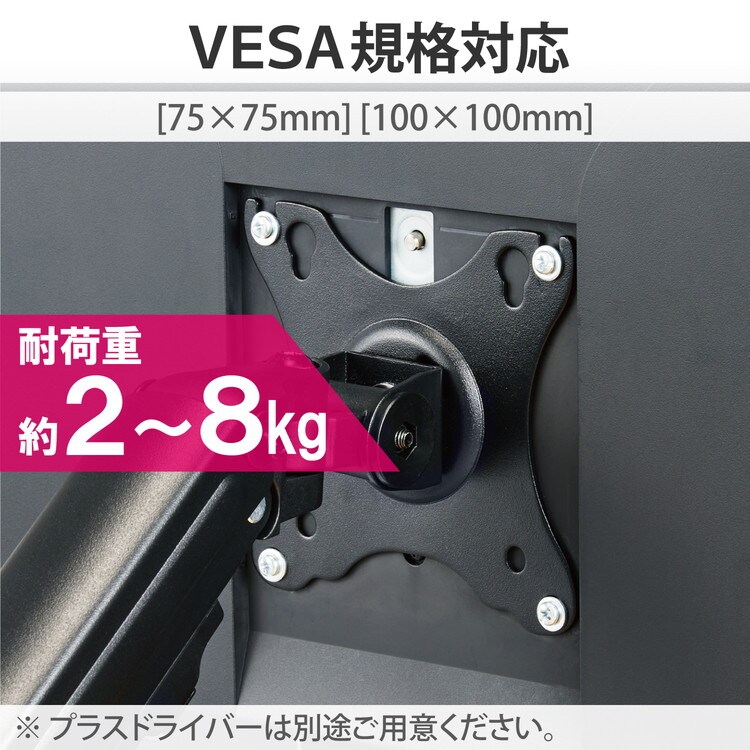 ■VESA規格(75mm×75mm、100mm×100mm)に準拠したモニターに対応しています。