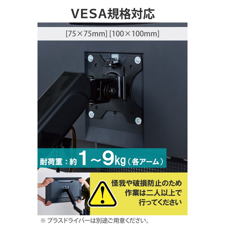■VESA規格(75mm×75mm、100mm×100mm)に準拠したモニターに対応しています。