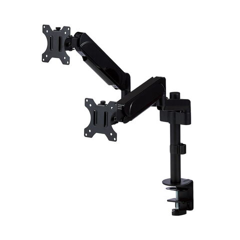 ■17~32インチサイズのモニターに対応するガススプリング式のデュアルモニターアーム、支柱付きです。