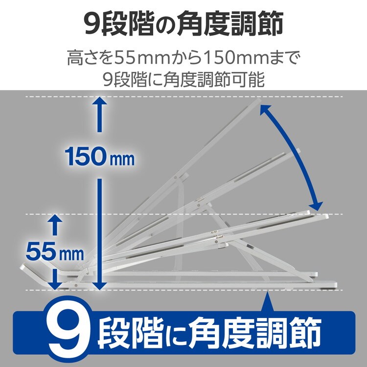 ■9段階の角度に調整できる、ポータブルノートパソコンスタンドです。