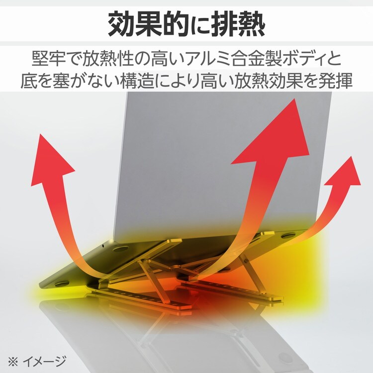 ■熱伝導性が高く、ノートパソコンの底をふさがない構造なので放熱効果が抜群です。