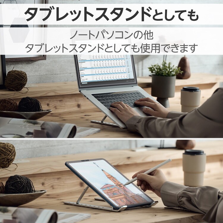 エレコム ノートパソコンスタンド タブレットスタンド 折りたたみ式 9段階角度調整 10~17.3インチ MacBook Surface PC / iPad タブレット 各種対応 シルバー ELECOM【送料無料】