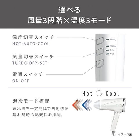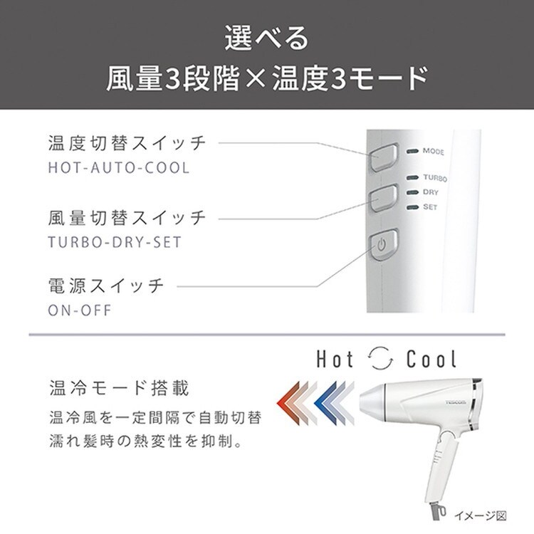 ■温風と冷風を一定間隔で自動切替することで、髪の表面温度を適温に保ち、髪への熱ダメージを抑制します。