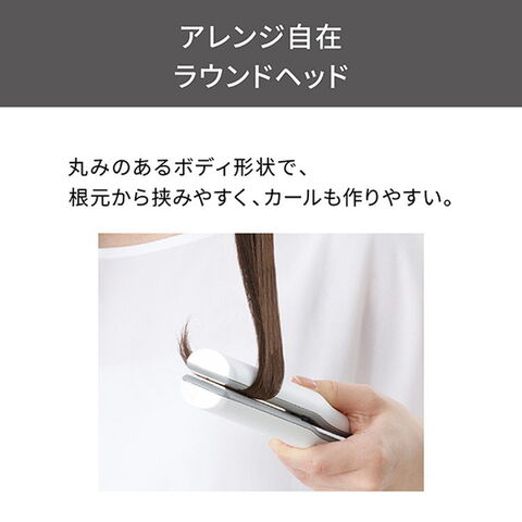 ■髪の流れに沿ってプレートが前後左右に傾いて、細かな毛束にも「ぴたっと」密着。毛先も後れ毛も逃さず、しっかりスタイリングできます。