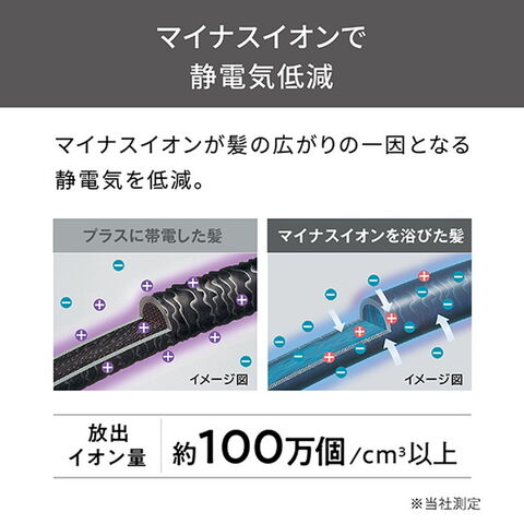 ■ボディ中央から、約100万個/cm3以上※3のマイナスイオンを放出。髪の広がりの一因となる静電気を低減します。