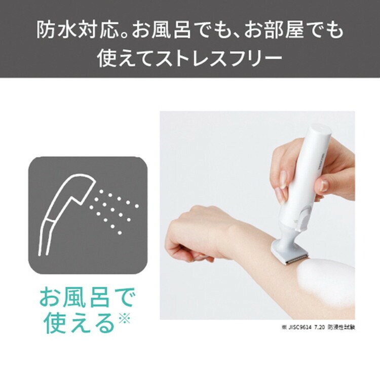 ■お風呂での泡ぞりも、お部屋でのドライぞりも、好きなタイミングで使えてストレスフリー。本体・アタッチメントはまるごと水洗い可能で、清潔に使えます。※3※2:JISC96147.20防浸性試験※3:アタッチメントのお湯洗いは45℃以下