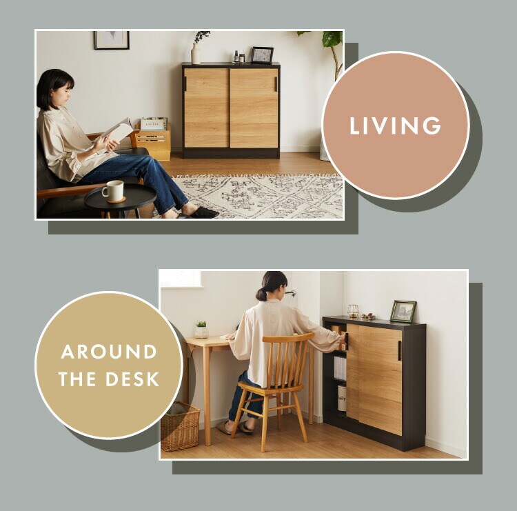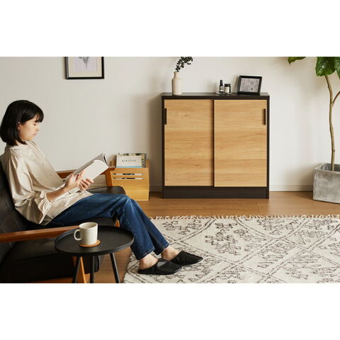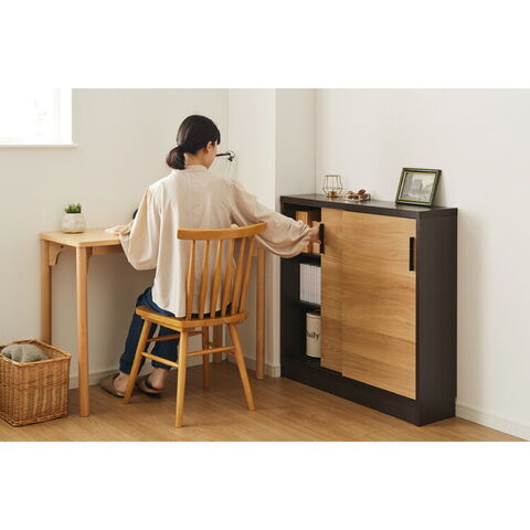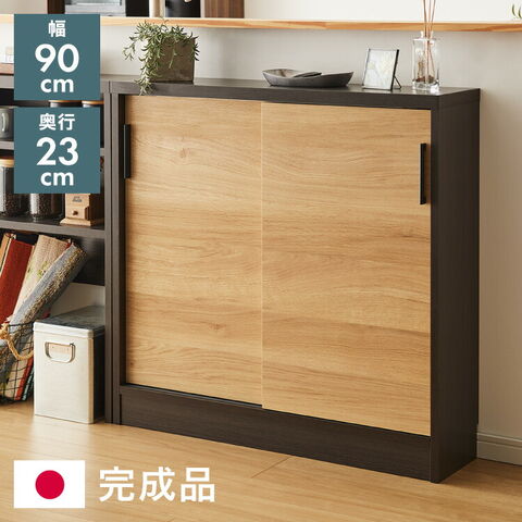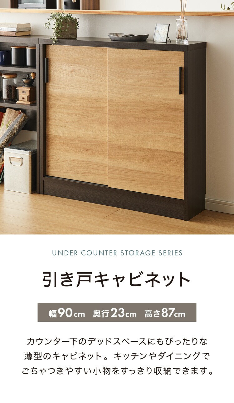 カウンター下収納 幅90cm 和モダン キャビネット 完成品 引出し ロータイプ おしゃれ キッチン収納 リビング収納 食器棚 コンパクト 省スペース キッチンカウンター 北欧 スリム 木製 木目調【送料無料】