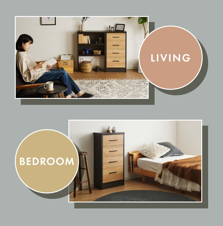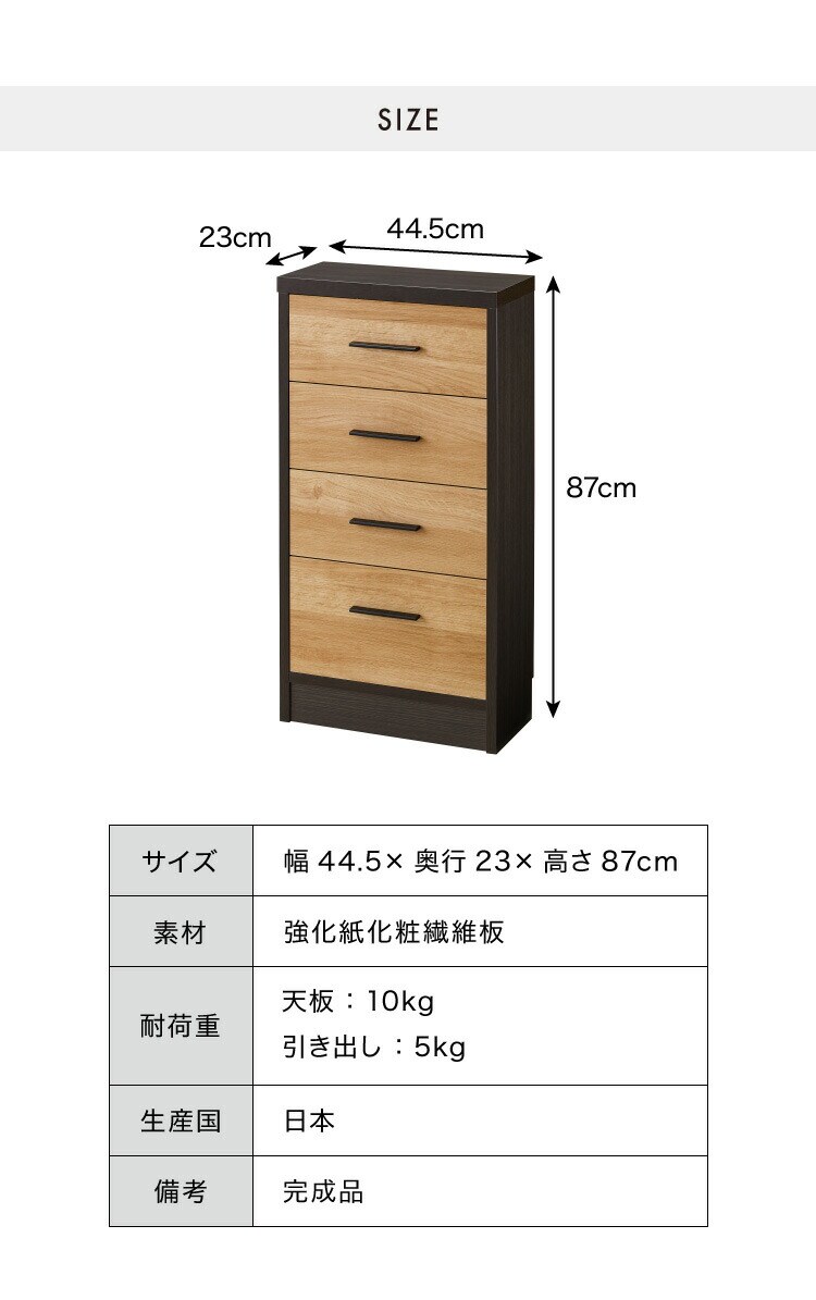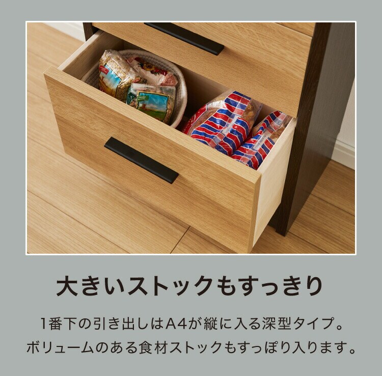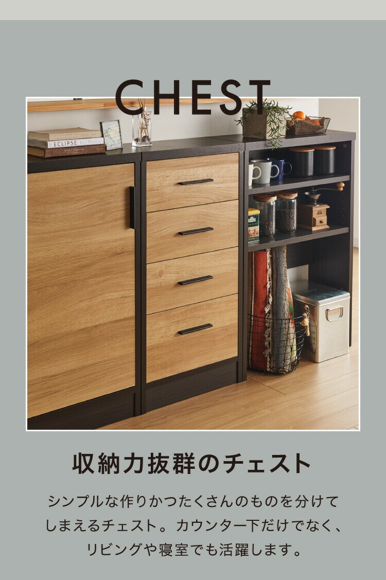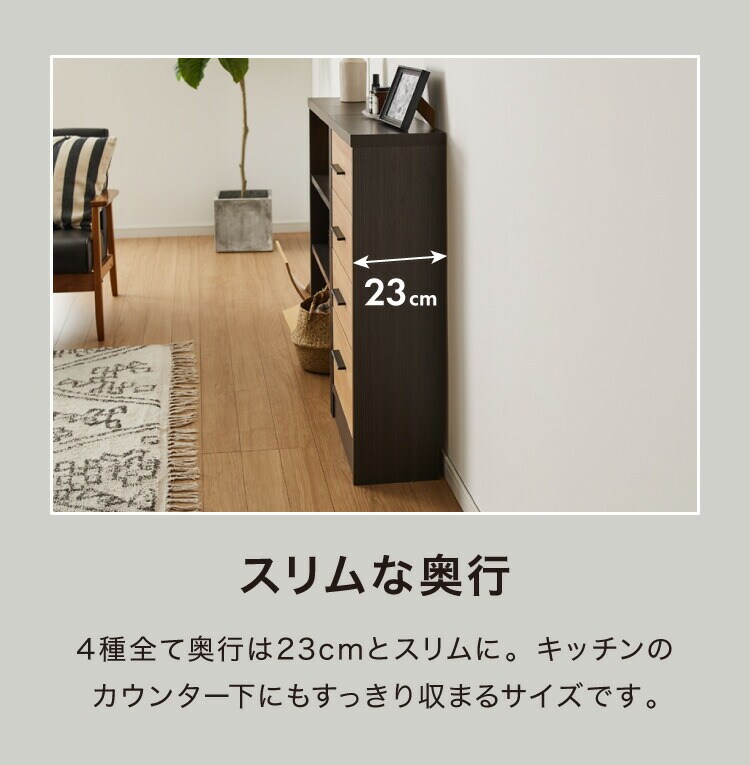 カウンター下収納 幅44cm 和モダン 完成品 引出し 4段 ロータイプ おしゃれ キッチン収納 リビング収納 食器棚 コンパクト 省スペース キッチンカウンター 北欧 スリム 木製 木目調【送料無料】