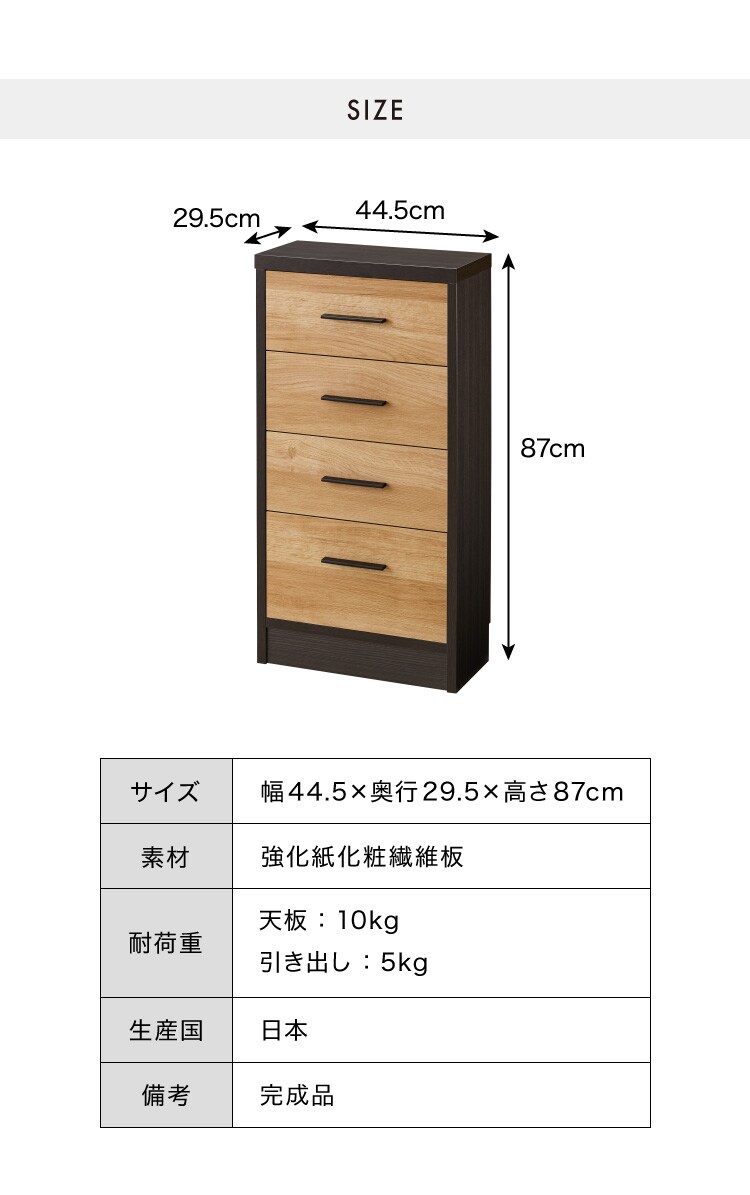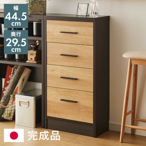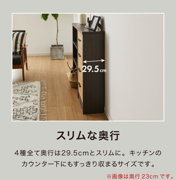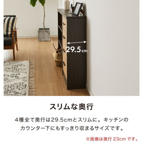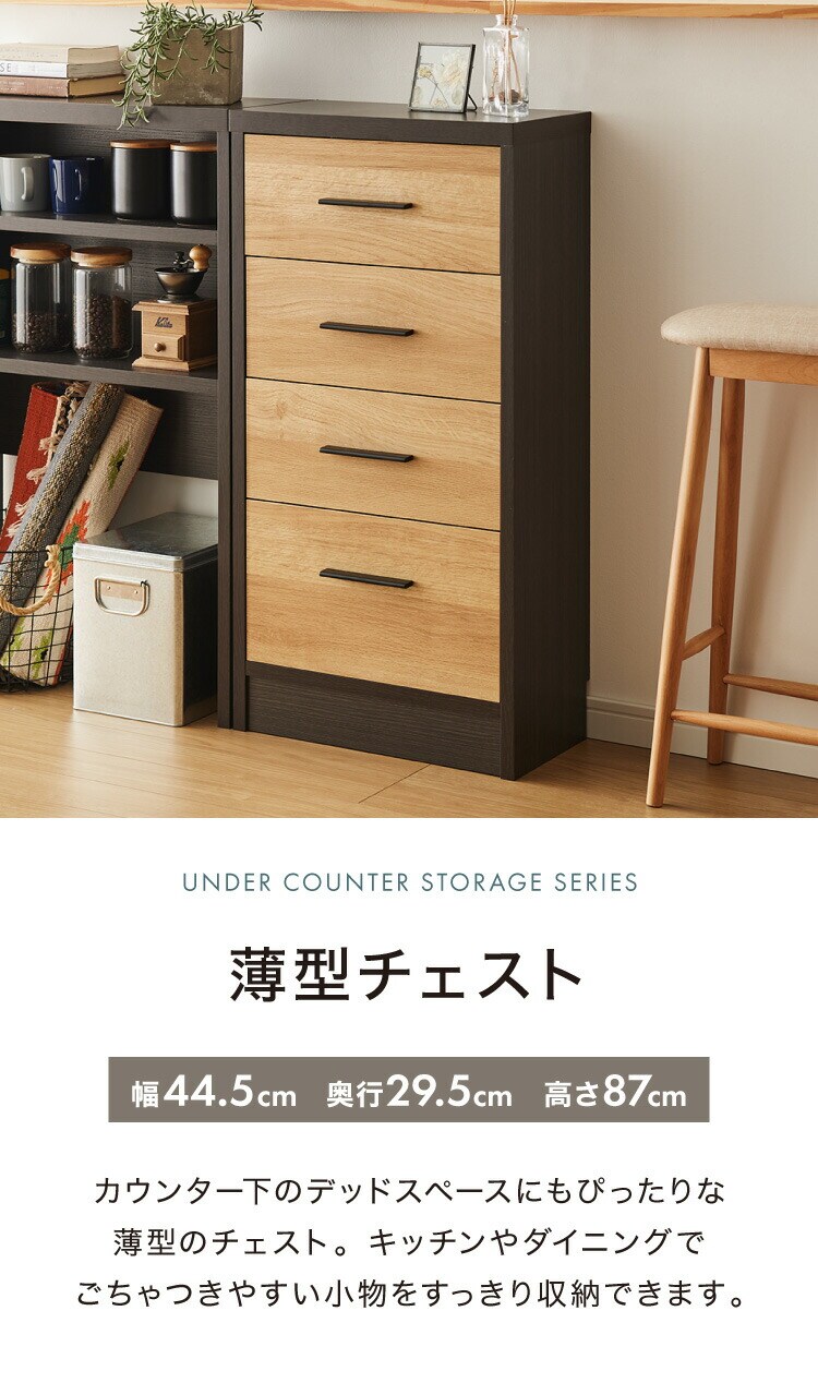 カウンター下収納 幅44cm 奥行29.5cm 和モダン 完成品 引出し 4段 ロータイプ おしゃれ キッチン収納 リビング収納 食器棚 コンパクト 省スペース キッチンカウンター 北欧 スリム【送料無料】