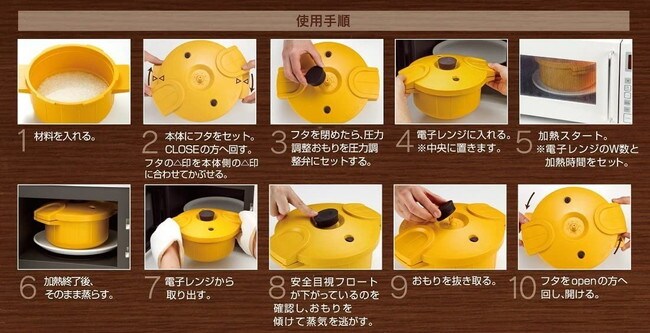 電子レンジで美味しく圧力調理。材料を入れて電子レンジで加熱するだけ。