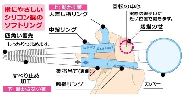 始めから正しい持ち方で、お箸を落とさず使えます。