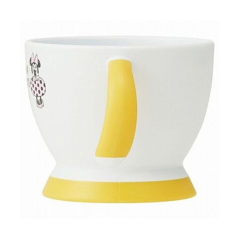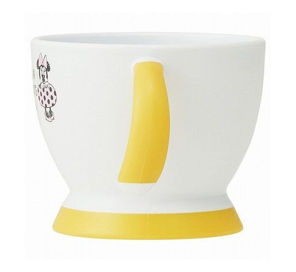 手前に曲がっていて両手で握りやすい持ち手と、すそ広がりで倒れにくい形状がポイントの両手持ちコップです。