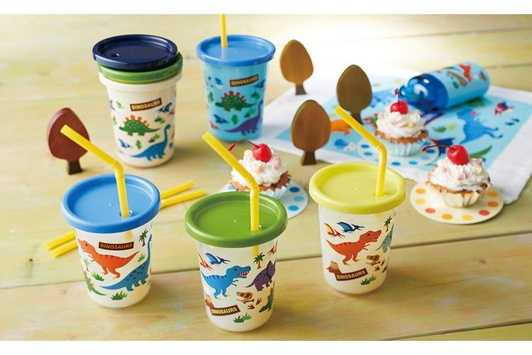 可愛いキャラクターのフタ付きコップ3個セット。